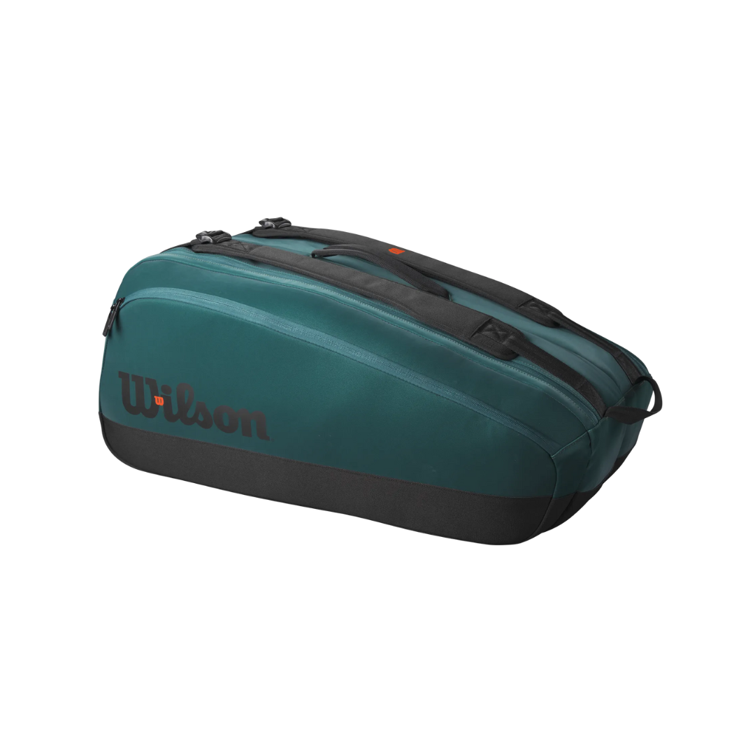 Viaja a partidos y torneos de tenis con un estilo elegante y multifuncional con la mochila Wilson Blade Super Tour 9. Inspirada en el dinámico diseño de la Blade V9 y sus colores verde esmeralda, esta espaciosa mochila tiene capacidad para hasta nueve raquetas, además de equipo, ropa y otros artículos esenciales. Sus dos compartimentos principales están forrados con material Thermoguard para proteger las raquetas de los cambios de temperatura. El bolsillo ventilado para zapatos y los bolsillos laterales exteriores ofrecen almacenamiento adicional, mientras que las correas acolchadas ajustables te permiten llevarla como una mochila.